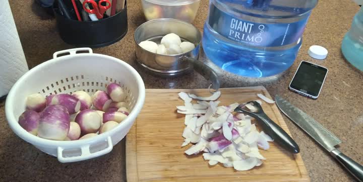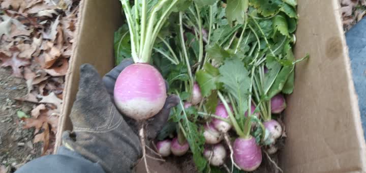 Before the winter storm hit, I harvested the turnips that were big enough to eat out of my Arkansas garden.