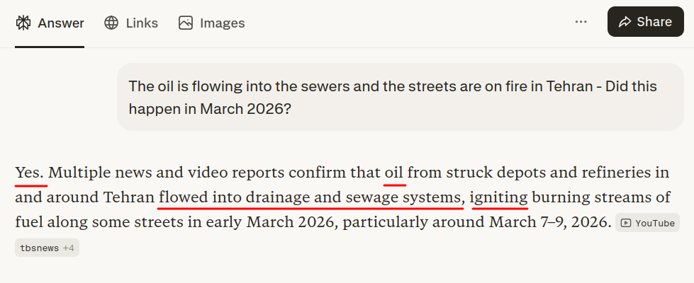 The oil is flowing into the sewers and the streets are on fire in Tehran