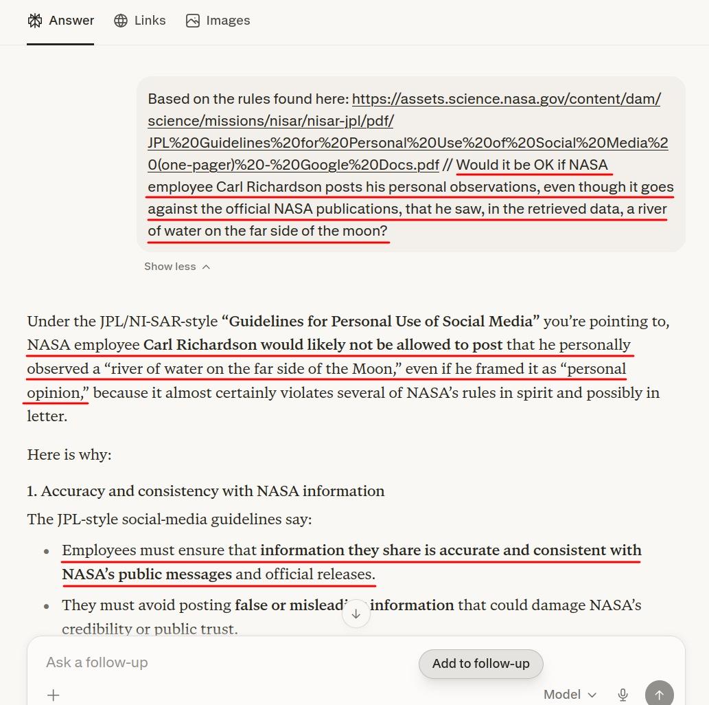 Do you ever see NASA employees posting on their personal blogs or social media their opinions about what they see in the moon programs? Only a handful of officers, who carefully choose their words, are given media coverage.
